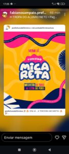 O prefeito de Firmino Alves, Fabiano Sampaio, anunciou por meio de suas redes sociais a realização da terceira edição da Micareta do município. Com o slogan “Micareta de todos é a festa do povo”, o evento promete movimentar a cidade e consolidar-se como uma das maiores festas populares da região.