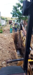 Já foram executados aproximadamente 2.200 metros de rede em PVC corrugado de 150mm, de um total de 2.550 metros previstos, com conclusão estimada para o início março de 2026.