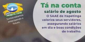 SAAE DE ITAPETINGA PAGA SERVIDORES RIGOROSAMENTE EM DIA