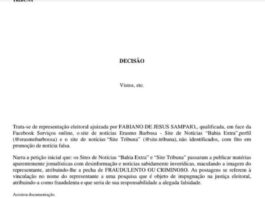 JUSTIÇA OBRIGA SITE BAHIA EXTRA RETIRAR DO AR MATÉRIAS FAKES SOBRE PESQUISA FRAUDULENTA EM FIRMINO ALVES
